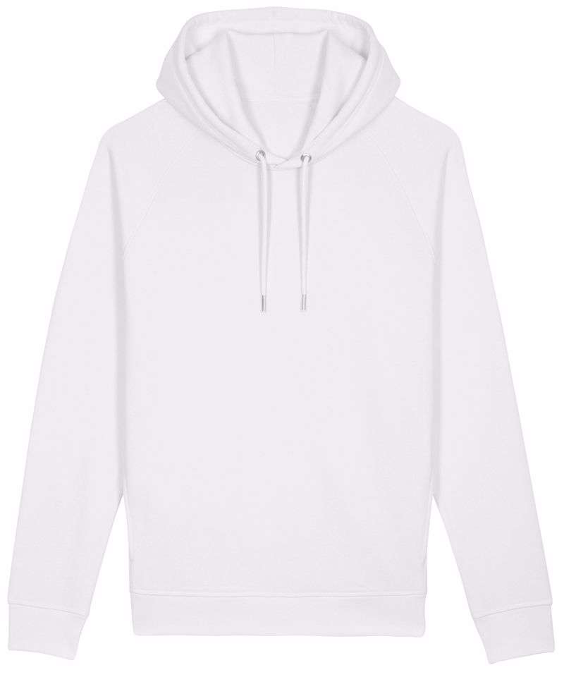 Raglan sleeve. Double-layered hood in self-fabric. Round drawcords in matching body colour with metal tipping. Metal eyelets. Inside herringbone back neck tape. Self-fabric half-moon at back neck. Slanted side seams with pockets. 1x1 rib at sleeve hem and bottom hem. Flatlock top-stitch on all seams.