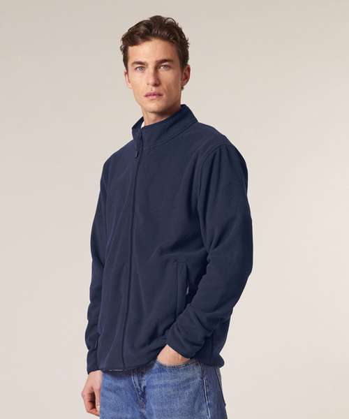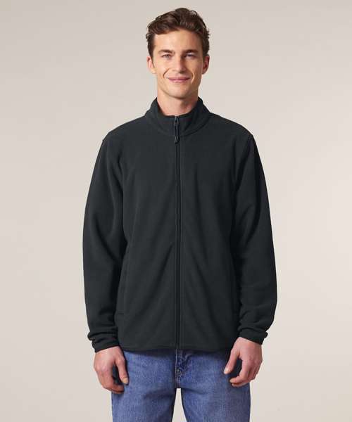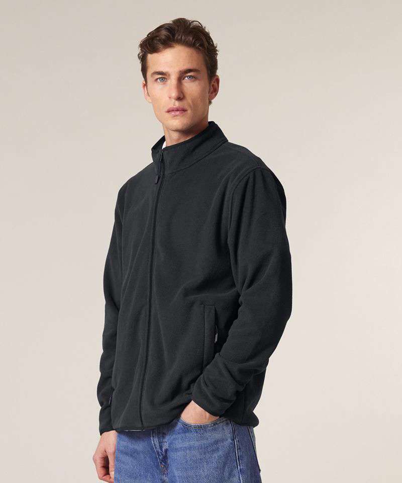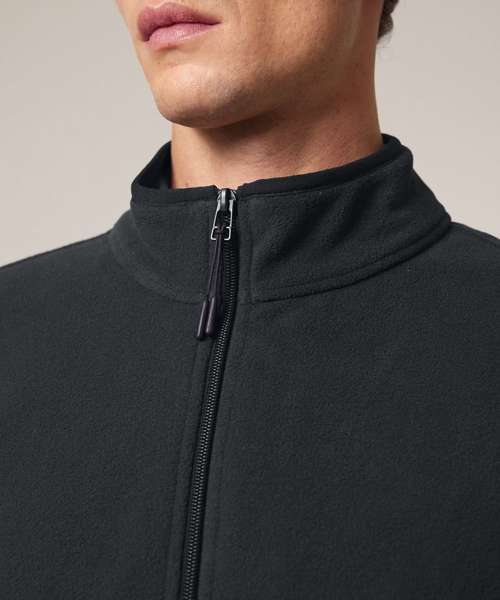 Set-in sleeves. Elastic binding at neck edge, cuffs and hem. Inside back neck grosgrain loop. Nylon coil zip with metal zip pull and cord ending. Brushed fabric with anti-pilling finish on the inside and outside. Front side welt pockets with zip opening. Inside back neck tape in recycled polyester.