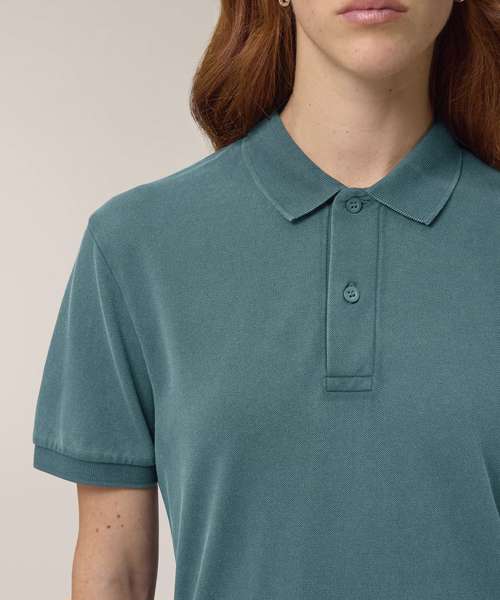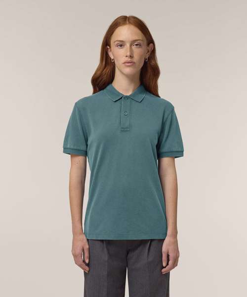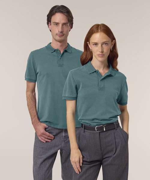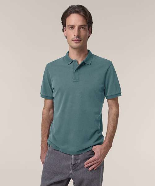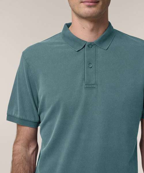 The unisex Coaster Vintage mid-light polo. Fitted. Set-in sleeve. Flat knit rib on collar and sleeve hem. Inside heavy single Jersey back neck tape. Front inserted placket with two buttons in matching body colour. Slit and bartack finish at side seam hem Single-needle topstitch at shoulder seams. Bottom hem with narrow double-needle topstitch.