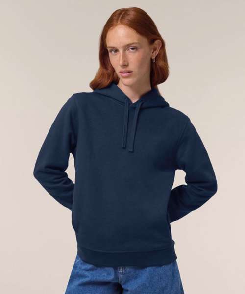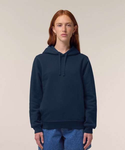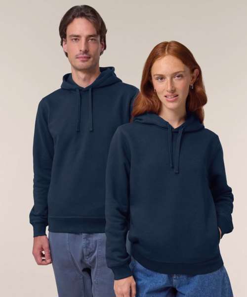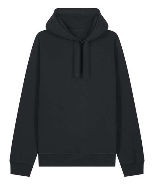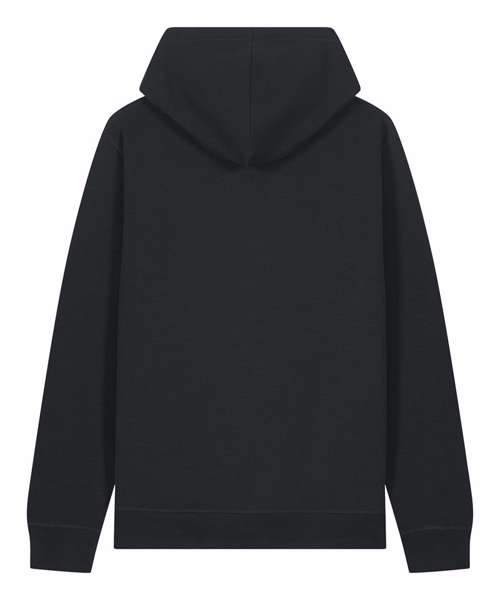 The Sounder side-pocket hoodie/sweatshirt. Medium unisex fit. Set-in sleeves. Self-fabric lined hood. Flat drawcords in matching body colour. Embroidered buttonhole eyelets. 1x1 rib at sleeves cuffs and bottom hem. Slanted side seam with pockets. Three-needle flatlock stitches on all seams. Herringbone tape at inside back neck seam and inside of zip. Self-fabric half moon at back neck.