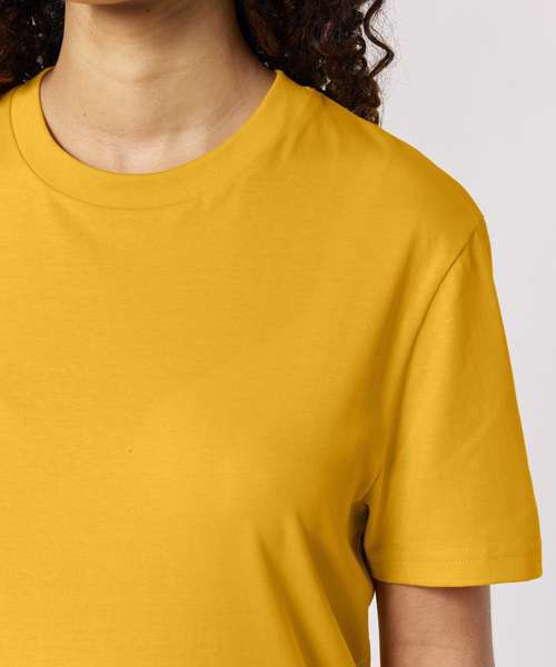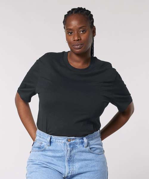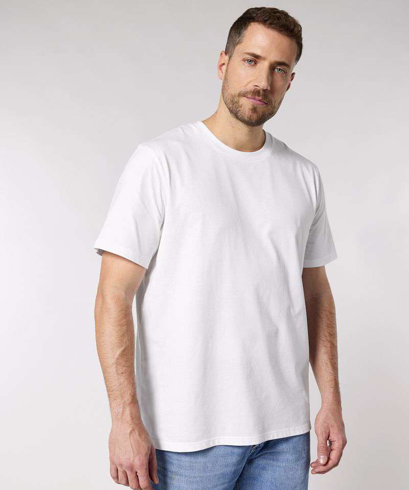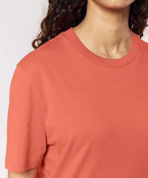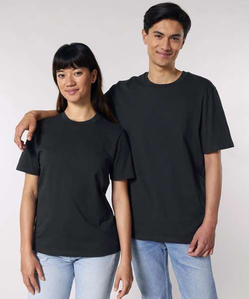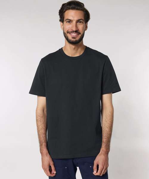 The iconic unisex t-shirt. Modern medium fit. Set-in sleeve. 1x1 rib at neck collar. Inside back neck tape in self-fabric. Twin-needle topstitch at sleeve cuff and hem.