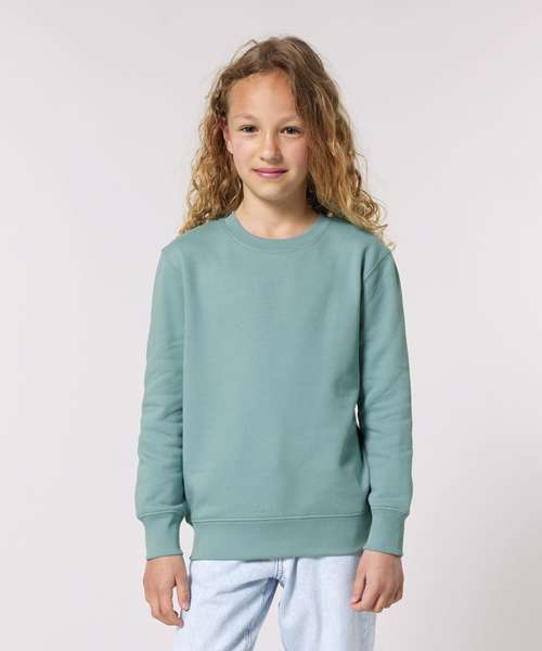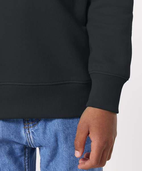 The iconic kids’ crew neck sweatshirt. Medium fit. 1x1 rib at neck collar, sleeve hem and bottom hem. Self-fabric half moon at back neck. Single-needle topstitch at neck collar. Twin-needle topstitch centered on seam at hem, cuff and armhole.