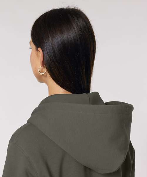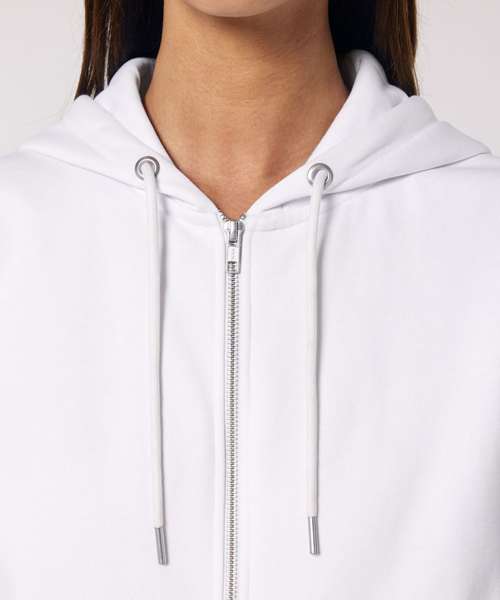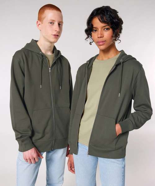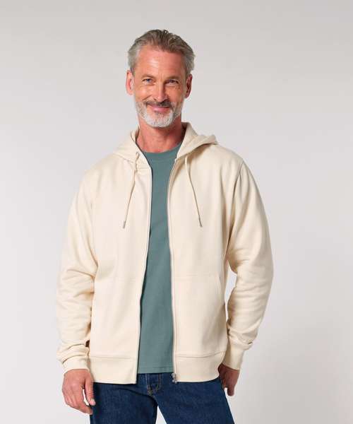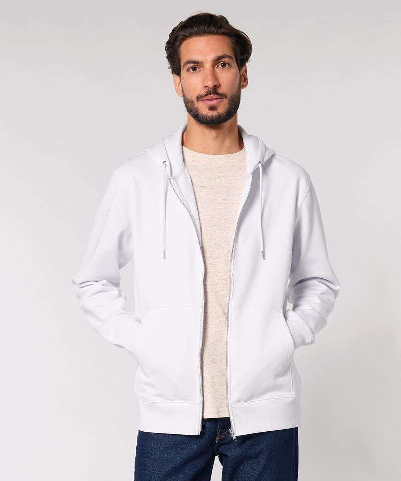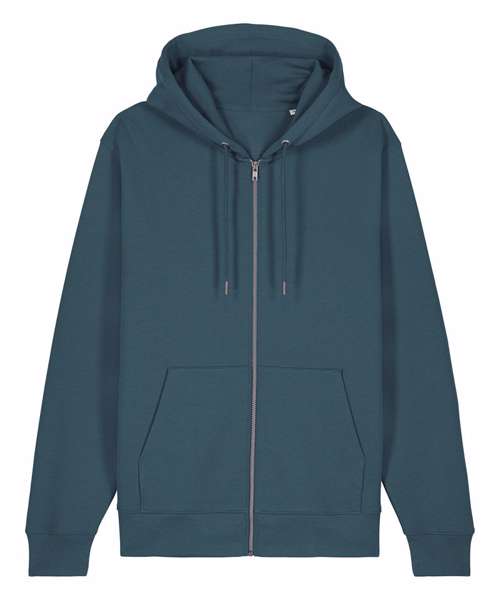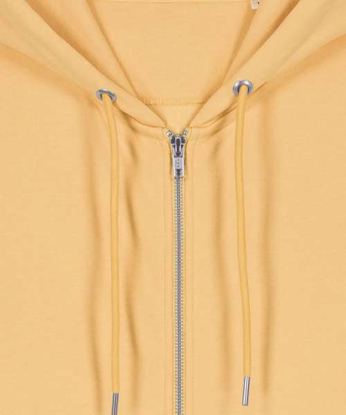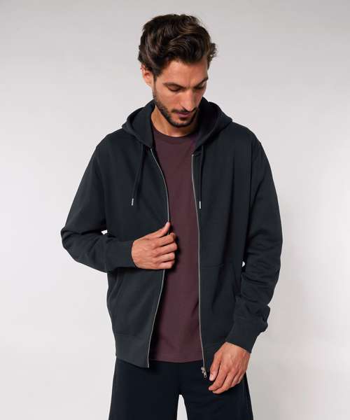 The iconic unisex zip-thru hoodie sweatshirt. Modern medium fit. Double self-fabric lined hood. Drawcords with closed end metal tipping and metal eyelets. Self-fabric half-moon at back neck. 1x1 rib at sleeve hem and bottom hem.