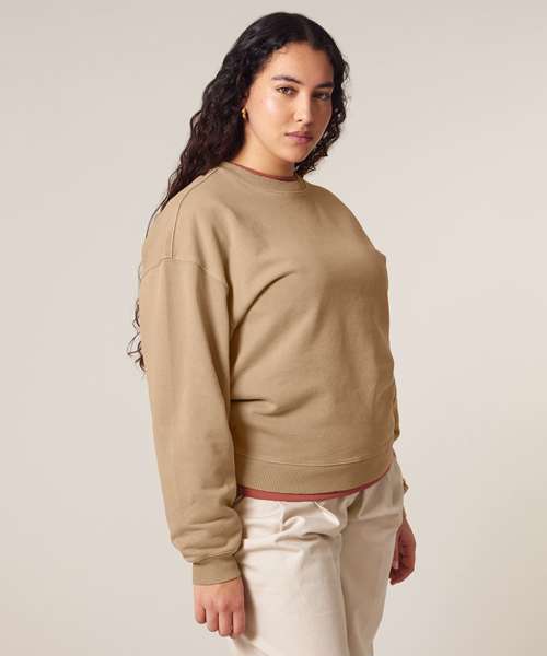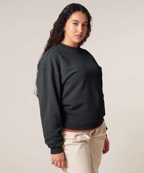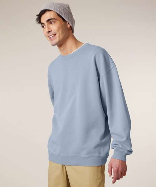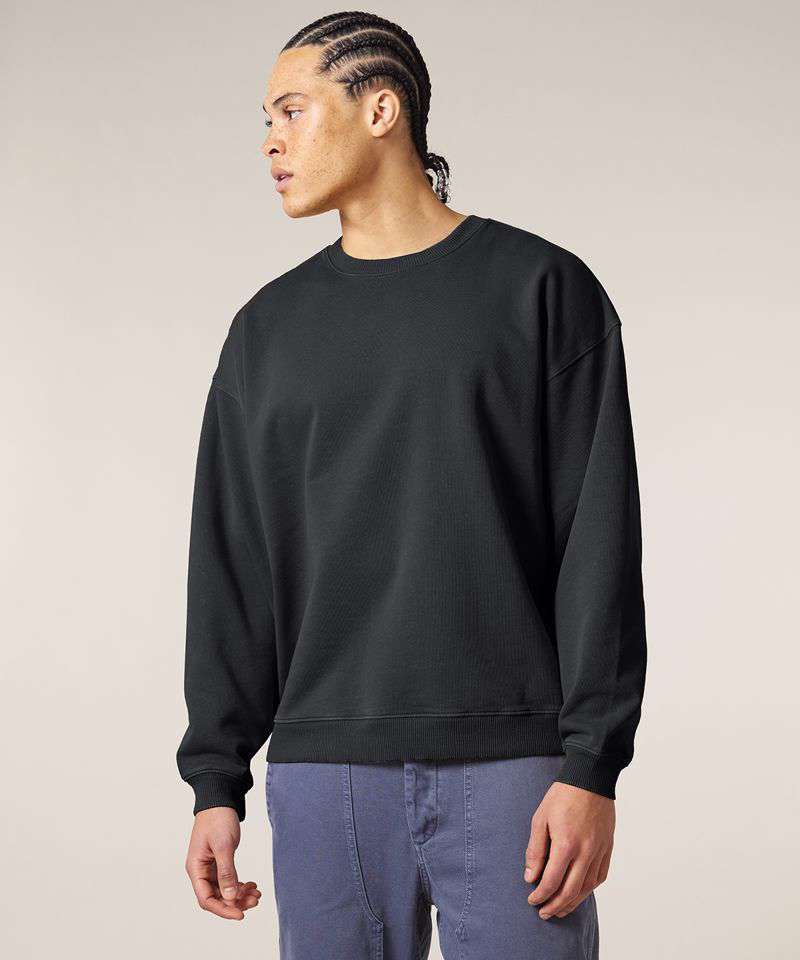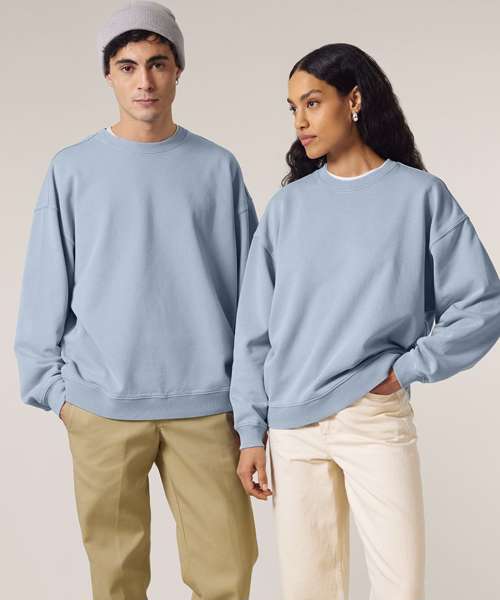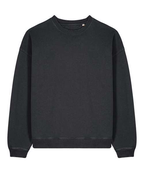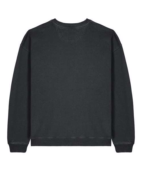 Set-in sleeves. 2x1 rib at collar, sleeve cuffs and bottom hem. Double-needle topstitches on all seams. Inside herringbone back neck tape. Self-fabric half moon at the back neck. Slight shading on the seams to give a washed look. Garment-dyed product: each garment may vary in appearance and colour may bleed (follow our care label). Carefully read printing recommendations.