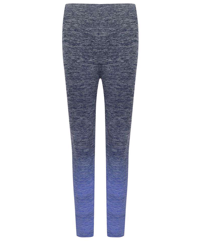 Fitted, high-stretch leggings with grown-on waistband. Seamless knit for comfort. Melange fabric with fade out/ombre colouring. Blind stitch at hems. Tombo tear-out label.