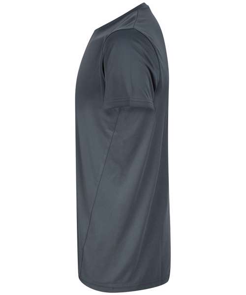 Loose fit. Unisex. Crew neck t-shirt. Forward side seam at panel, extended from back panel. Top stitching at forward side seam. Recycled polyester. Twin-needle sleeve cuff and hems. Self-fabric back neck tape.