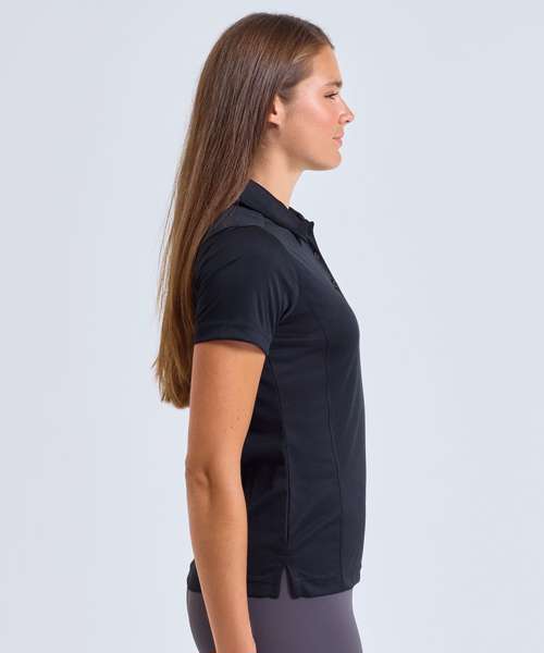 Wicking fabric. Polo shirt. Short sleeve. Mesh panels on sides. 3-button placket. Self-fabric collar. We recommend using block out vinyl and inks.Product contains no branded neck or waist label. Removable Kimble or looped garment tags. Inner seam label holds important product information on one label with a second label containing brand information which can be cut-away. UPF 40+.