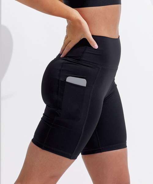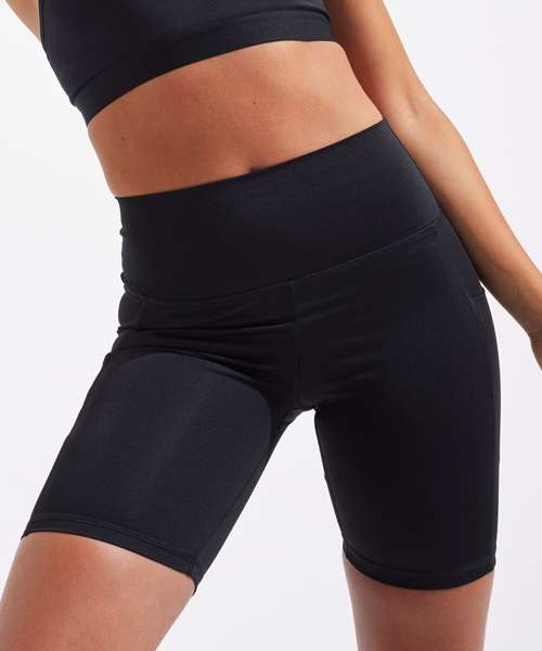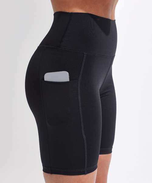 Legging shorts. Soft-stretch fabric. Deep waistband. Shorts finish mid-thigh. We recommend using block out vinyl and inks.Product contains no branded neck or waist label. Removable Kimble or looped garment tags. Inner seam label holds important product information on one label with a second label containing brand information which can be cut-away.