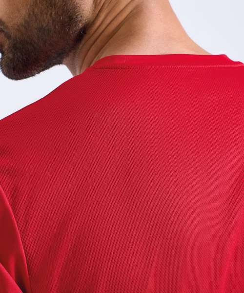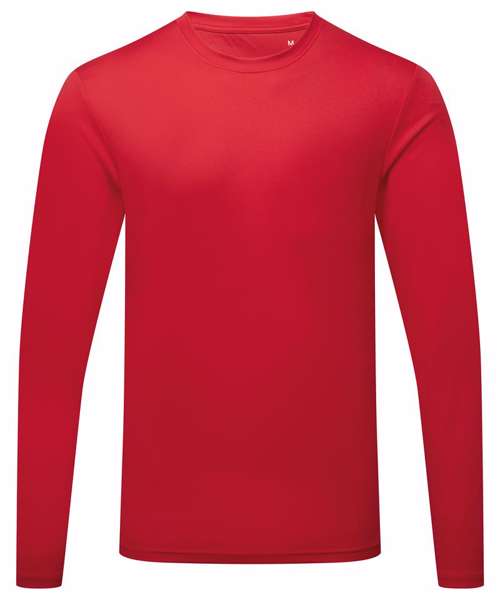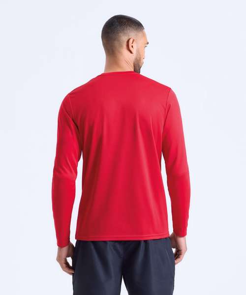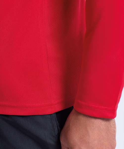 Wicking fabric. Stretch. Crew neck. Long sleeve. Lightweight. Twin-needle stitching on hem and arms. Mesh back. We recommend using block out vinyl and inks.Product contains no branded neck or waist label. Removable Kimble or looped garment tags. Inner seam label holds important product information on one label with a second label containing brand information which can be cut-away. UPF 40+.