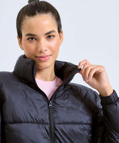 Lightweight padded jacket with wide panel quilting. Full zip-through style with internal storm flap and high neck collar. Elasticated cords with plastic adjusters to inner hem. Zipped side pockets. Concealed inner pockets. Elasticated cuffs. We recommend using block out vinyl and inks.Product contains no branded neck or waist label. Removable Kimble or looped garment tags. Inner seam label holds important product information on one label with a second label containing brand information which can be cut-away.