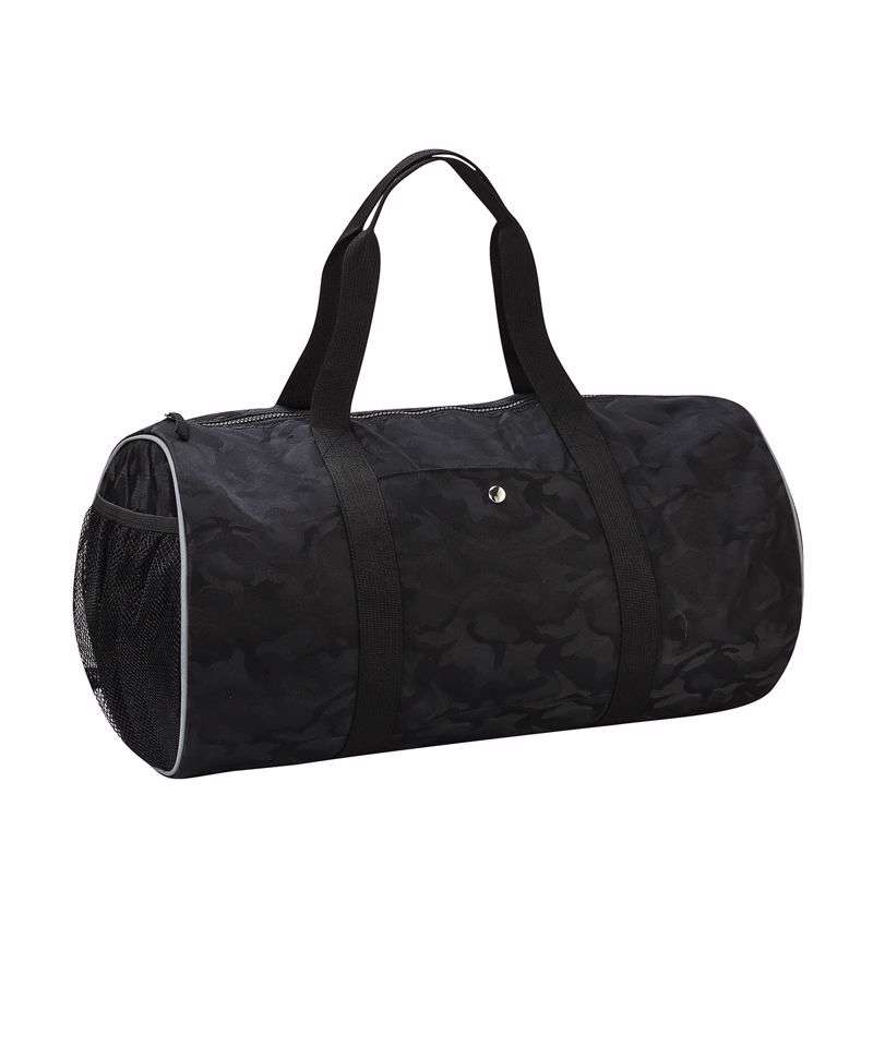 Attractive Print. Pocket on the front. Elasticated mesh pockets on the side of the bag. Inside zip pocket. Strap loops on the back of the bag. Zip fastening. Inside mesh pockets. We recommend using block out vinyl and inks.Product contains no branded neck or waist label. Removable Kimble or looped garment tags. Inner seam label holds important product information on one label with a second label containing brand information which can be cut-away. Length – 48cm, End diameter – 25cm.