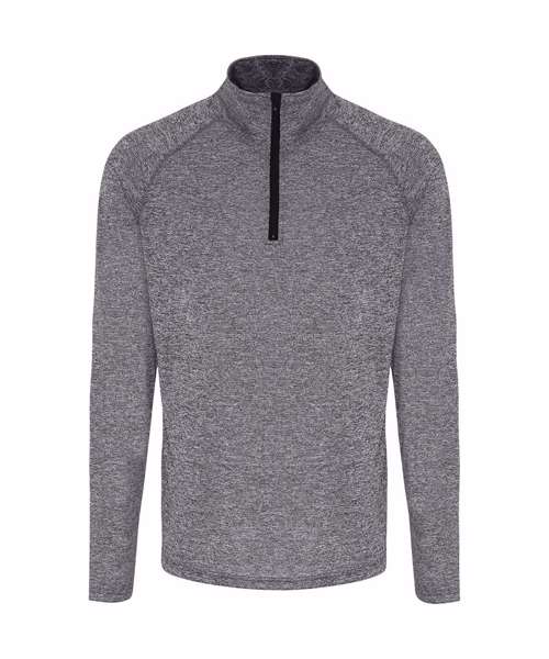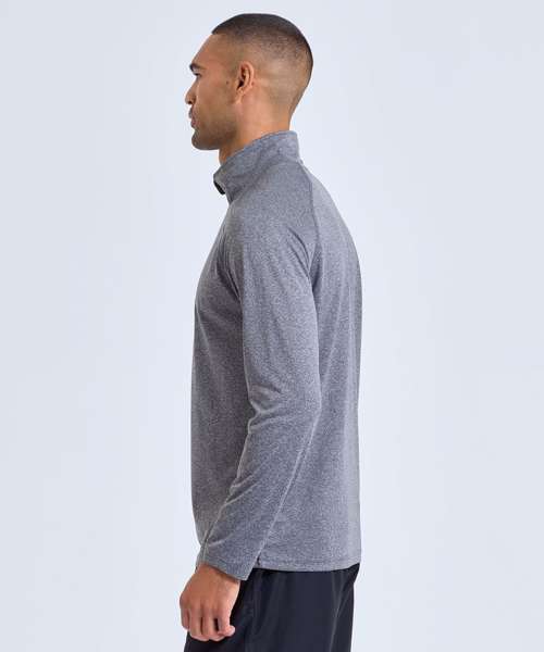 Contrast ¼ zip. Long sleeves. Stretch. Twin-needle stitching. Wicking fabric. We recommend using block out vinyl and inks.Product contains no branded neck or waist label. Removable Kimble or looped garment tags. Inner seam label holds important product information on one label with a second label containing brand information which can be cut-away. UPF 40+.