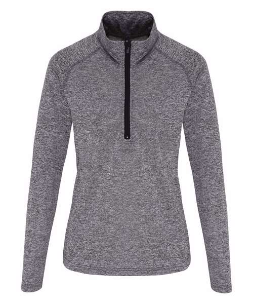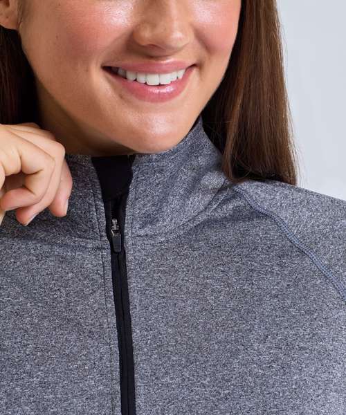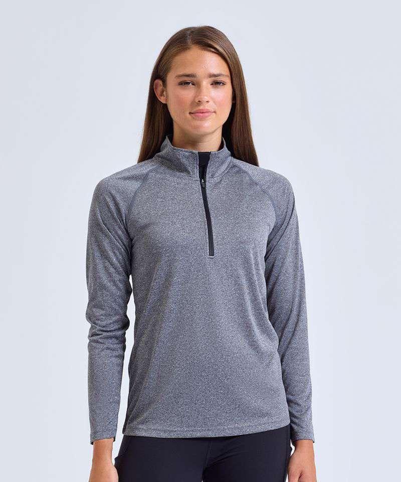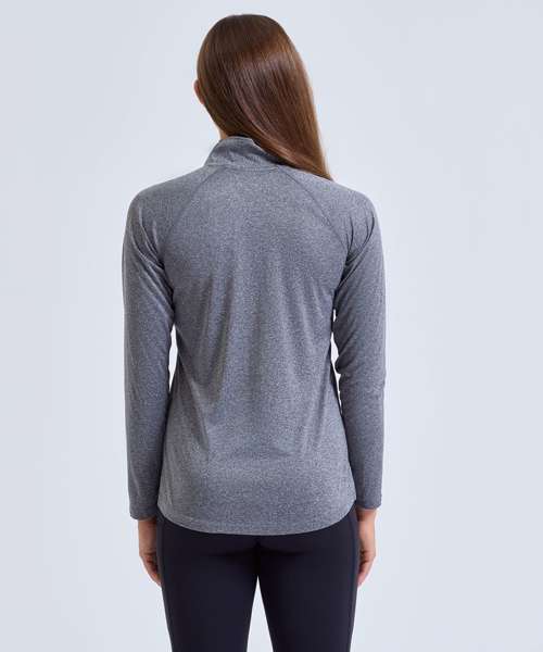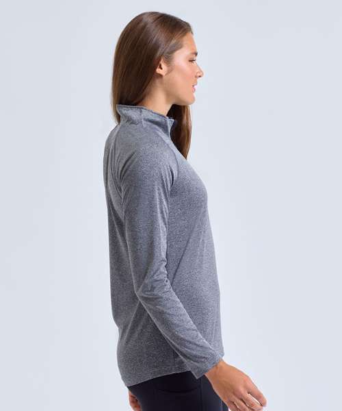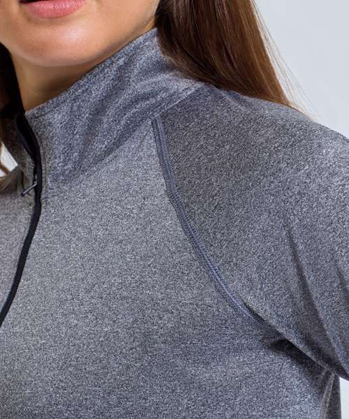 Contrast ¼ zip. Long sleeves. Stretch. Twin-needle stitching. Wicking fabric. We recommend using block out vinyl and inks.Product contains no branded neck or waist label. Removable Kimble or looped garment tags. Inner seam label holds important product information on one label with a second label containing brand information which can be cut-away. UPF 40+.