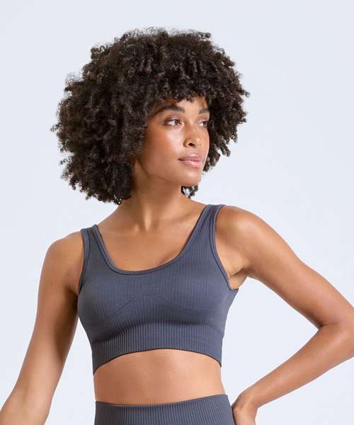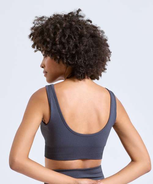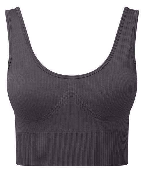 Seamless sports bra. Grown-on waistband. Body sculpting design detailing. Removable padding. Medium impact. We recommend using block out vinyl and inks.Product contains no branded neck or waist label. Removable Kimble or looped garment tags. Inner seam label holds important product information on one label with a second label containing brand information which can be cut-away.