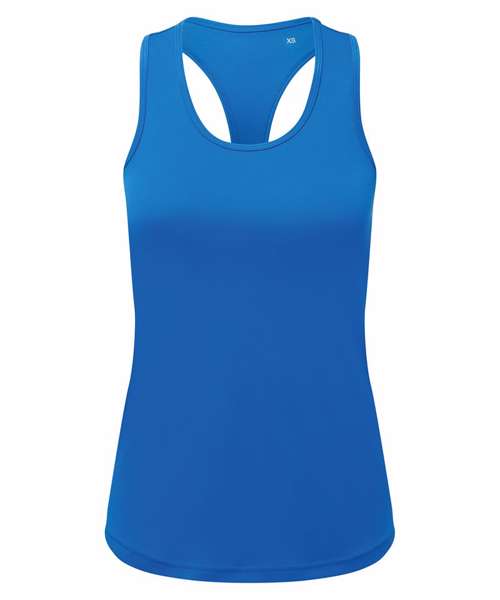 Scoop neck. Racerback. Curved hem. Recycled polyester. We recommend using block out vinyl and inks.Product contains no branded neck or waist label. Removable Kimble or looped garment tags. Inner seam label holds important product information on one label with a second label containing brand information which can be cut-away.