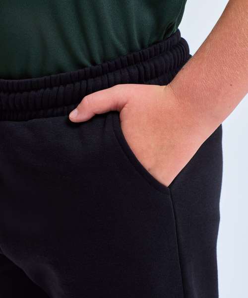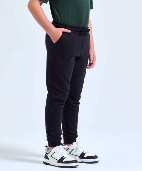 Self-fabric ties. Elasticated waistband. Slim fit. Ribbed cuffs. Side pockets. We recommend using block out vinyl and inks.Product contains no branded neck or waist label. Removable Kimble or looped garment tags. Inner seam label holds important product information on one label with a second label containing brand information which can be cut-away. Recycled polyester.