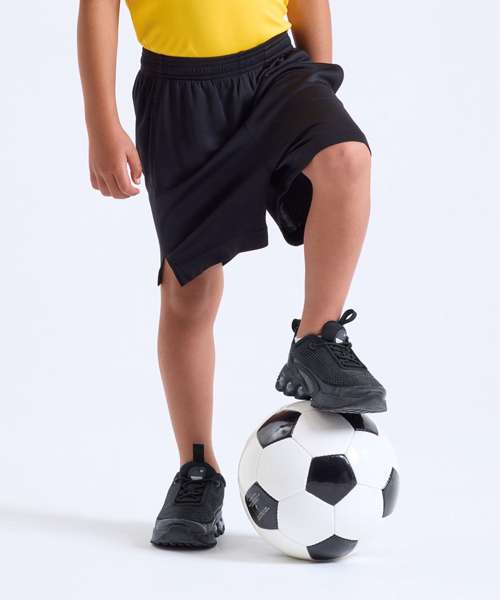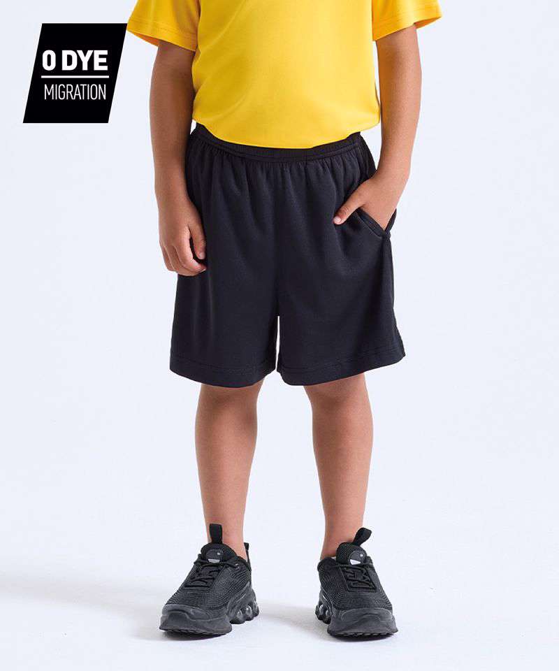 Performance shorts. Unisex fit. Cationic-dyed. Certified recycled polyester. Wicking fabric. Stretch. Lightweight. Breathable. Side pockets. Adjustable drawstring. Textured finish. Inner brief.