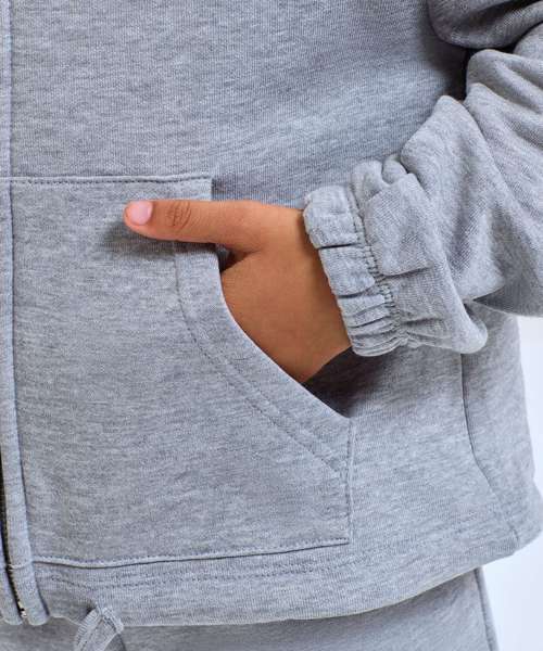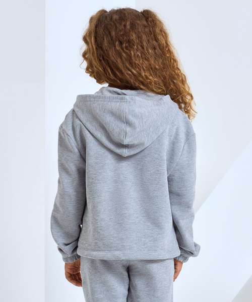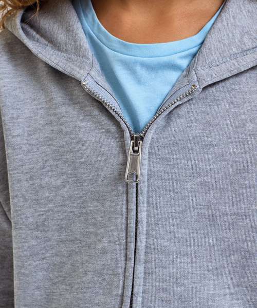 Oversized, cropped hoodie full-zip hoodie. Concealed zip to front in chrome finish. Dropped shoulders. Drawstring tie to waist which is sewn in at the back of the garment. Kangaroo pockets to front. Recycled polyester. We recommend using block out vinyl and inks. Product contains no branded neck or waist label. Removable Kimble or looped garment tags. Inner seam label holds important product information on one label with a second label containing brand information which can be cut-away.