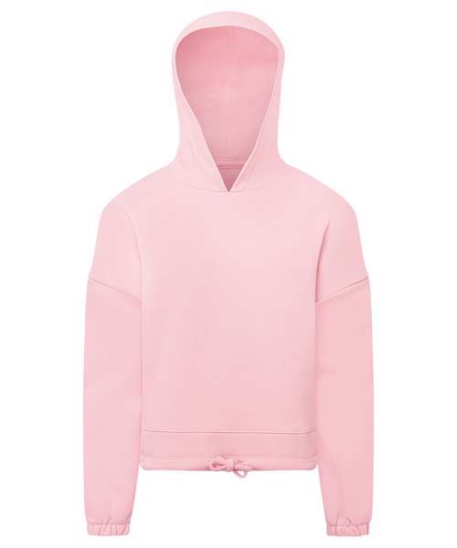 Oversized. Cropped. Relaxed fit. Hoodie. Dropped shoulders. Drawcord fastening at waist. Drawstring tie to waist which is sewn in at the back of the garment. We recommend using block out vinyl and inks.Product contains no branded neck or waist label. Removable Kimble or looped garment tags. Inner seam label holds important product information on one label with a second label containing brand information which can be cut-away. Recycled polyester.