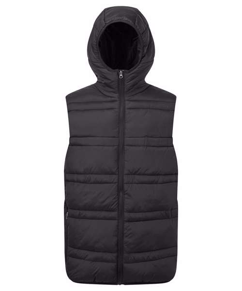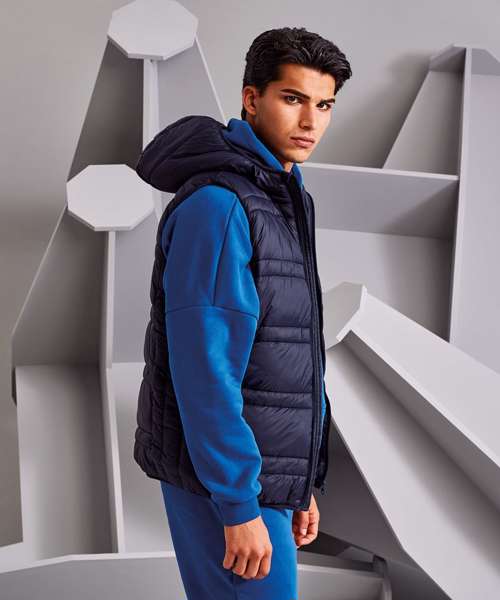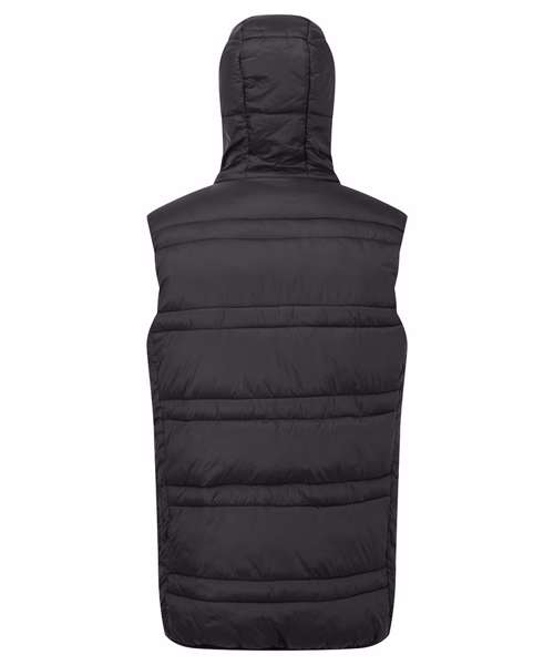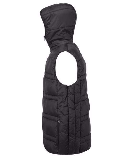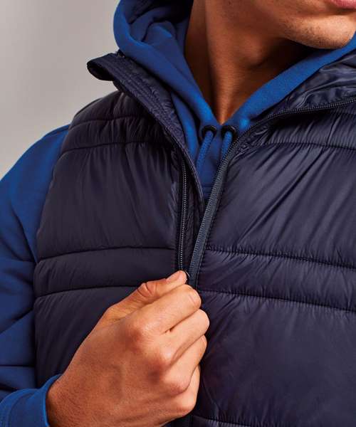 Reverse coil zip on centre front with signature zip pull. Quilted horizontal stitched wide and narrow baffles. Quilted hood with elasticate edge. Fully lined in Polyester. Elasticate armholes for a snugger fit. Internal zipped opening for embroidery access. Reverse coil zip side pockets. Internal zip pockets. Internal storm flap with chin guard. Product contains no branded neck label.* Removable Kimble or looped garment tags. Inner seam label holds important product information on one label with a second label containing brand information which can be cut-away.