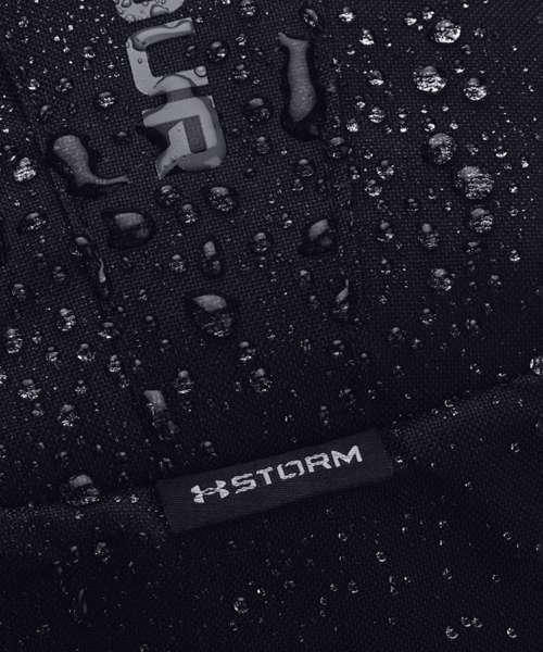 UA Storm technology delivers an element-battling, highly water-resistant and stain-resistant finish. Padded back panel and ergonomic straps for comfortable carrying. Soft-lined laptop sleeve holds up to 15" MacBook Pro® or similarly-sized laptop. Zipped front valuables pocket. Side water bottle pocket. Molle webbing for additional attachment points. Durable PU-coated bottom panel.